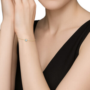 A symbol of love, this heart-shaped diamond bracelet shines through its smooth bezel and delicate chain.